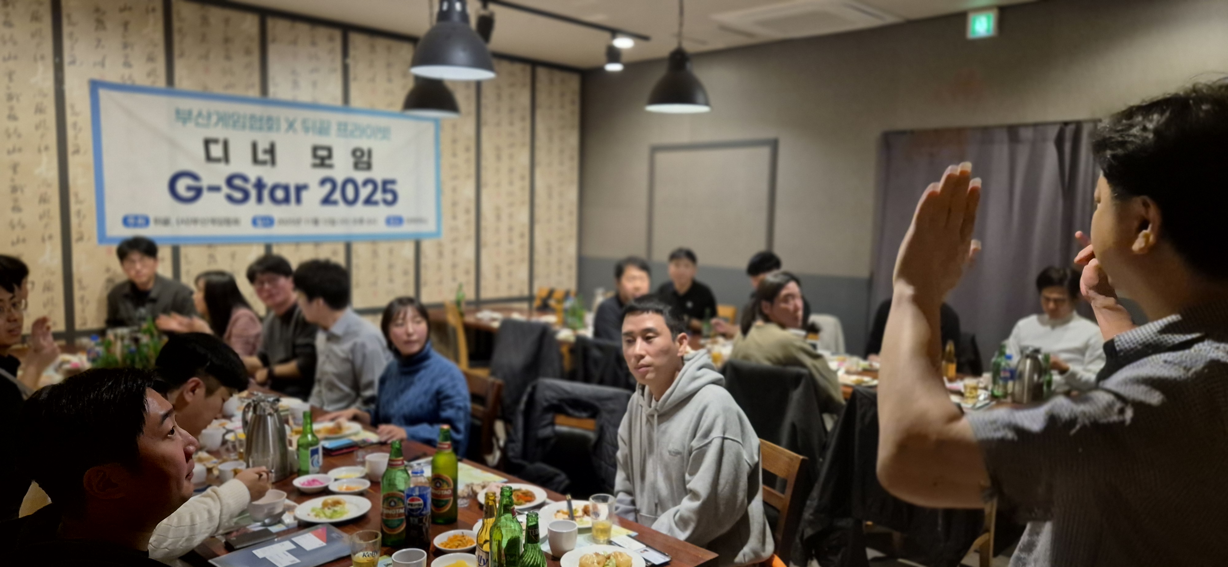 부산게임협회는 G-Star 2025 기간 중, 모바일 게임 서버 '뒤끝'과 함께 부산 지역 모바일 게임 개발사 및 퍼블리셔를 위한 프라이빗 디너 모임을 성공적으로 개최하였습니다.